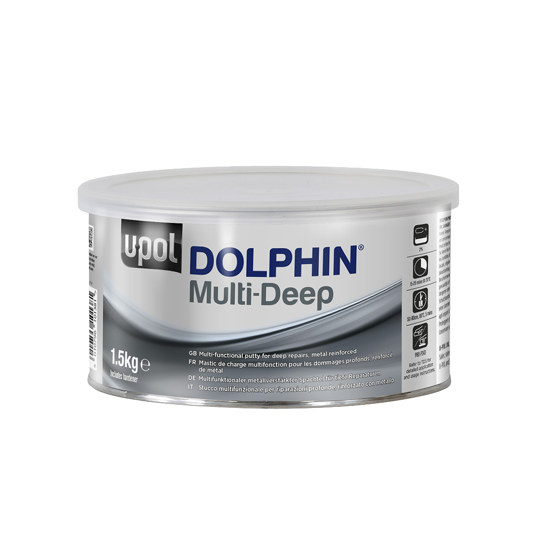 Multifunksjonell sparkel for middels til dype reparasjoner.Dolphin Multi-Deep er en metallforsterket sparkel med høy tetthet.